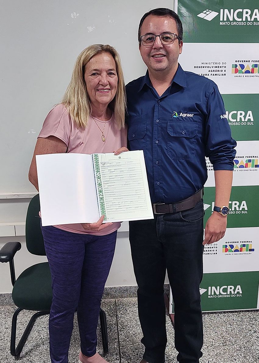 A entrega de 17 títulos definitivos de propriedade rural do Projeto de Assentamento Conquista marcou um importante avanço na regularização fundiária e na garantia de direitos às famílias agricultoras da comunidade. A solenidade foi realizada na manhã desta terça-feira (10), na Sede da Superintendência Regional do Incra (SR-16), em Campo Grande.