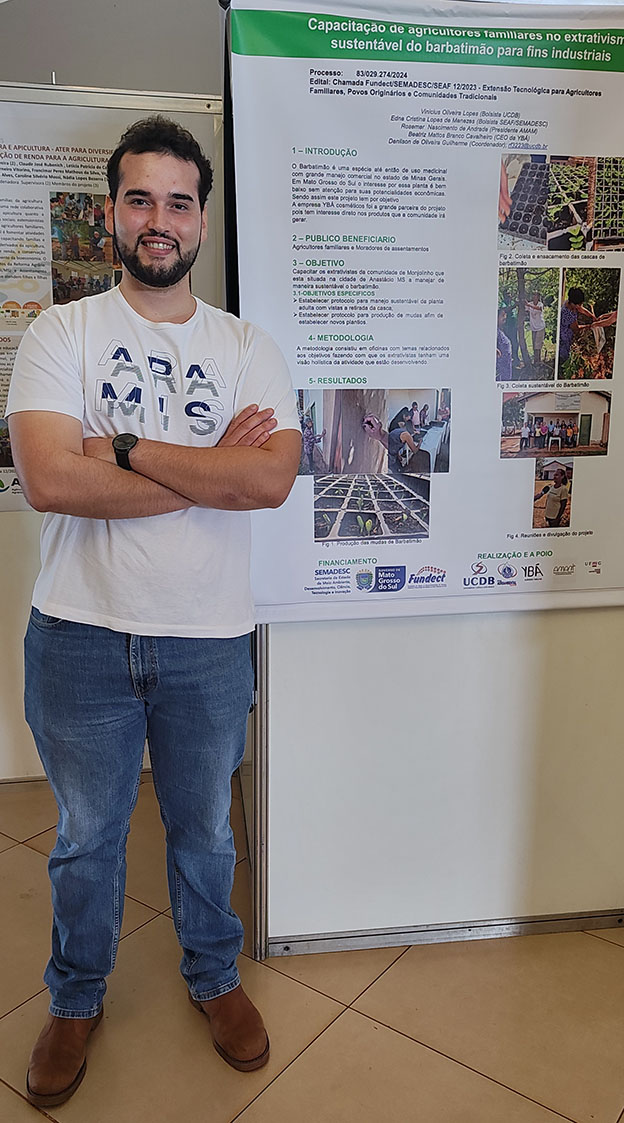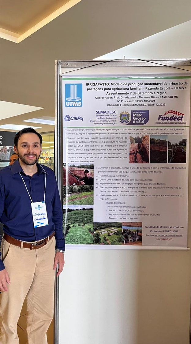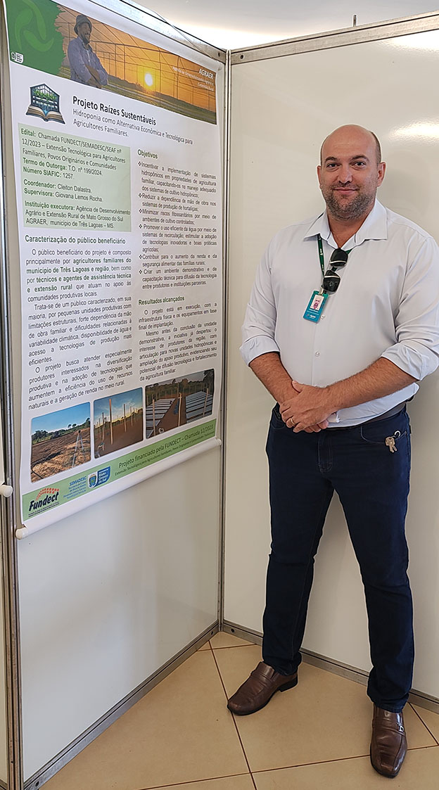 • O Governo do Estado deu início, na tarde desta quinta-feira (12), à apresentação dos resultados dos projetos desenvolvidos por meio da Chamada Fundect/Semadesc/Seaf nº 12/2023 de Extensão Tecnológica para Agricultores Familiares, Povos Originários e Comunidades Tradicionais. O Seminário Extensão Tecnológica MS – Agricultura Familiar acontece de 12 a 13 de março no auditório do campus da UEMS em Campo Grande, reunindo cerca de 200 participantes entre pesquisadores, extensionistas, representantes do poder público e equipes dos projetos para compartilhar experiências e avaliar os impactos das ações no campo.